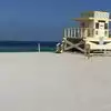 This is my take: the beach itself is nothing special-the sand is not powdery or white but coarse and a dull gray like New Smyrna, Daytona or Cocoa. There was a lot of natural debris (not garbage) on the shore and in the water so did not go swimming. the water itself had hues of blue beyond the debris.