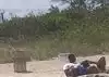 Or the same dude in the white hat, yellow shirt, and red bathing suit that literally spends the day walking back and forth searching for unsuspecting "hot" women. You can be sure that if an attractive woman attempts to enjoy this wonderful beach, this jerk will find her. He will then drop his gear. Walk away to suggest disinterest, only to return, plop down on his stomach and open the same dog-eared book, and stare at the woman's crotch. If it weren't so pathetic, it would actually be funny. He is there every day. I've attached a couple of photos so that you can keep Your eyes out for him.