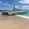 We visited here before and after our cruise in January. Both times we were there, the beach was clean and very quiet. The water was clear and calm and it was fun to watch the boats come and go.