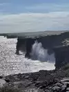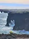 Next was the Kīlauea Visitor Center. We picked up a few maps, looked around and started off. We drove down, about 45 minutes to the Puna Coast. It a cliff that overlooks the ocean. It's called a bridge(was 2 now only 1). It's a sea arch in the cliff wall. They were made by cooling lava, wind and crashing water. Had some lunch. We brought our own. Then started back up.