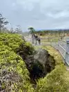 Went to the lava tube, couldn’t get a parking space continued up the road to the parking area called devastation. Parked and walked out to the view point to see the volcano crater you could see smoke and steam pouring out of the ground.