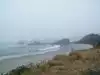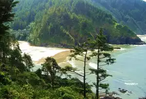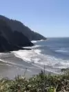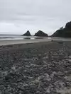 This stop right off of highway 101 north of Florence, OR is well worth a visit. Take the steep lighthouse trail up behind the lighthouse for magnificent views. The beach has a creek running into it, and a mix of cobbles and sand.
