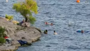 Nice warm water. Water is clear enough to view the fish and turtles. People are friendly, you can go off on your own or join a conversation. Suit or no suit it is up to you. All ages from 18 and up. Sadly, there is no real flat place to lay out and relax also the lake bottom is very rocky. It is also a little rocky getting to the water, but if this is your thing it is worth it