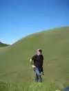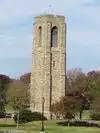 Near the library building.
