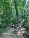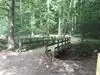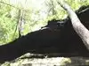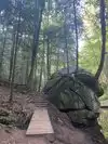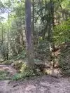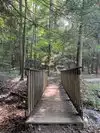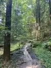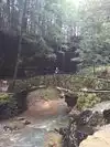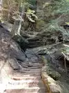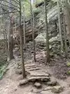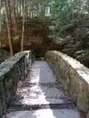 Our next hike after lunch was the newer trails, Hemlock Bridge Trail and the Whispering Caves trails. You start out at the Hemlock Bridge and the Whispering Caves veers off at that trail. It says it is moderate to difficult. I found it to be true. I was glad we had our backpack cooler filled with water with us. There are a lot of steep steps, narrow ways, and tree roots to step over. We did the Hemlock Bridge down to the bridge. You could easily skip the lower portion of this hike past the Whispering Cave since it's mostly level and hugs the creek; I'd go only if you want to see the bridge. It took us about two hours, but we stopped to take pictures (and rest) along the way. It's a difficult way down to start the hike and tiring (though less difficult oddly) going up. But it was a blast.