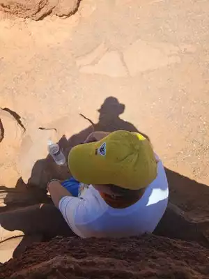 Bring water for the 10-minute walk to the site, in full sun.