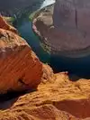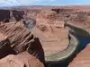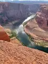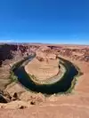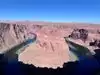 Parking (with dry toilets) for a small fee. You can only discover the "show" after 15 minutes of walking. (For your information, shelters exist during high heat). The emerald green Colorado River contrasts with the red cliffs. It's simply GRANDIOSE! Not to be missed.