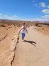 The challenge with Horseshoe Bend is the walk. It's a very wide crushed gravel path all the way down....and I do mean down. Not a big hill, but just a gentle decline all the way to the bend. It's about 1 mile, which isn't bad. But keep in mind, this is much lower elevation than the South or North rims, so the temps will be higher. The day we went, it was 96 degrees here (after leaving the South Rim that morning at 69 degrees). Most important, remember you have to walk that mile back to the parking lot, and it's basically an incline the whole way. There are 2 shade stations on the path, so use them if you need. And don't forget to take some water to drink!
