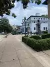 The Promenade is a beautiful paved walking path that connects with the sidewalks around Bathhouse Row and with miles of dirt trails going up the mountain. The area was busy with shoppers, sight seers, and people walking their dogs. We had to hunt for a parking space, but everyone we encountered was friendly and loved our doberman. Not all the shops and museums are dog friendly, so plan ahead if bringing your pet. There are several places where you can touch the spring water a faucet where you can fill up jugs and bottles with the spring water near the Congressional Building at the end of Bathhouse Row.