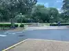 Part of the park is on a street front with stores, restaurants, etc.