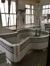 First, we toured the Fordyce Bathhouse. This was the largest of the bathhouses on Bathhouse Row. There were eight. Each opulent. We envisioned a place with a large swimming pool and Jacuzzi-type tubs around the pool. Nope! Going to a bathhouse was far more of an experience than that – individual hot-baths in large tubs, fancy showers, exercise equipment, hot towels, massages and the like. Prices began at $45/person. And the men and women are kept separated.