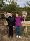 We visited Howling Woods Farm, a wolf sanctuary, today and had a wonderful time. The wolves were comfortable around people and we were able to get up-close and pet them. Hearing them all howl in unison was a great experience. We got lots of nice pictures, including us with the wolves because they posed nicely upon the platforms. Our tour guide Priscilla was very knowledgeable and Coleen also helped out. There is a cute little gift shop as well with various things for sale.