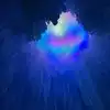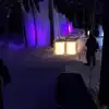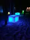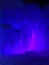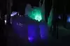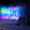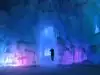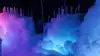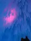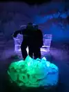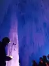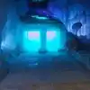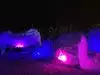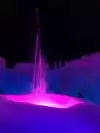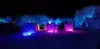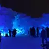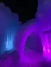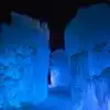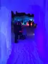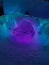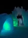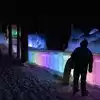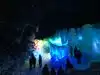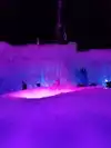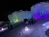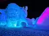 The colored lights add to the magic of the ice sculptures, walls and even a water fountain.