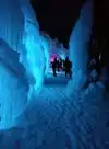 The entrance looks unassuming but behind it is a large maze of ice walls and arches. There are tunnels and cracks for kids to crawl through. Ice sculptures on a hill up above the main area. Ice chair to sit in and a fun fountain. Firepits to warm your hands. It is very pretty with the lights at night. Really cool looking slide but very long line so did not do that. Souvenir photo not interesting and expensive. We stayed an hour and enjoyed every minute.