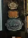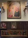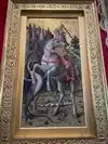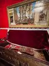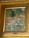 The ground floor has the breathtaking 4-story central atrium with glass skylights and beautiful plants and sculptures. Wonderful. The other rooms on this floor are largely as they were in her day, except that most of the furniture has been pushed back to the walls to allow visitors to walk through. Number of people in the room at one time is controlled by a staffer with a velvet rope. Even with that, it was VERY crowded and one has to maneuver carefully to get around. The rooms are not well lighted and it is VERY difficult to see much of the artwork because of this. There are no placards to identify the artwork or the artists; one is expected to scan a QR code and then look these up on one's phone. This is yet still another annoyance for those of us with lesser eyesight. There is a wonderful large Singer Sargent on the first floor. The second, third, and fourth floors are a bit more spacious, and entry is not controlled. Much of the artwork displayed here consists of altarpieces and medieval art, although there are a number of fine oil paintings on one floor (2nd?). Of course, there are also the five empty frames that mourn the loss of 13 masterpieces in a famous robbery., This included a Vermeer, 3 Rembrandts, a Flinct, a Manet, 5 Degas, a French bronze and a Chinese urn. It was sad to know these famous artworks have been missing since 1990, 33 years without a clue to their whereabouts.