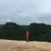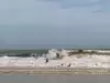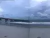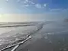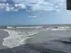 A beach with white and less height of the waves in a long sea shore. Many visitors were took sun bath and sea bath. Both baths are good. The waves are less height and very interesting to immerse ourselves into the sea when waves hit us. On one side main buildings and our activities are being watched by coastal protection staff.