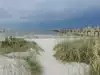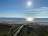 Nice beach site for hanging out, sunbathing, surfing, walking on the pier or running. Stay off the dunes.