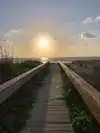Pet friendly beach that is clean and nice. Can't wait to come back in the summer. Also great for bike riding and surfing.
