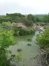 Also, if you’re interested, stop and see the remains of the original Alamo Portland Cement plant. There is a building with a smokestack and some smaller structures.