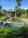 It was free. Near zoo. Limited free parking on site. No food service or refreshments available the day we visited. Public Water fountain was working. No signage for directions or information. Not sure if there were restrooms. There was restoration or maintenance going on with a building that maybe snack area or restrooms. Many steps, steep or rocky paths without many hand rails. Walkways over, around or near water feature maybe be challenging with children or unsteady folks. Take care. Some shade and a few benches.