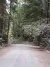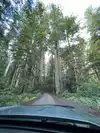 This road is unpaved, single lane with two-way traffic, bumpy and winds between enormous trees. Not for large vehicles!