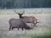 We took an awe-inspiring walk through a 1/2 Mile loop trail to view some of the old growth giant redwoods. It was an easy walk and very inspirational, but we only got halfway through it because two bull Roosevelt Elks blocked our path and we decided it would be best for them and for us to turn around and go back. Got some great photos though!