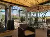 There was a patio but it was very hot that day and we asked to go inside. The only available room which was more of a small conference room was being used so we finished our tasting in the lobby. Plus there were no grounds to walk around or anything interesting to see. For $40 per person, all you got was a tasting of very average wines. Very disappointing visit.