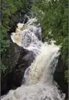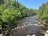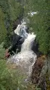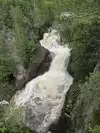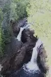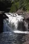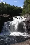 Great hike up the Brule river to the top of the waterfalls! The river splits in two, half tumbles 200 feet down the cliff, the other half goes into a cauldron, the "devil's kettle" to some where they have not been able to determine. LOTS of water. The sites at the campground are close and open, water spigots and vault toilets. Bear frequent the area.