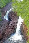 Park has a bit of shoreline, but is mostly following the Brule River deep into the North Shore. A good hour hike (with view stops) is to walk to the Devil's Kettle along the Brule. Be prepared, there are about 170 steps down to the waterfall. It seems like twice that when you're coming back up. Why Devil's Kettle? In low water times the river divides and the left side disappears into a cauldron. Doesn't come out. Somehow it must outlet to Lake Superior...right?