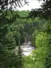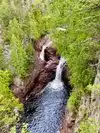 Anyway, the kettle is a place in the river where it splits, part of it as a waterfall, and the other part dives into a big hole. The water from that comes out in Lake Superior through an underground channel. There is only one convenient (and safe) location to see it well, so a lot of the photos will look alike.