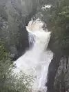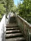 Really a pretty hike up through spruce and balsam forest to the falls, then the stairs begin. Lots of down, then some up and then the reverse, but it's all worth it for the rushing waters and great overlooks along the way.