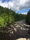 Great scenic hike along the Brule river in this state park. Moderately strenuous uphill grade - with about 6 sections of uphill stairs to get you to the top near the end of the hike. Plenty of places to stop and rest. No problems if you are in moderately good condition. Well worth the hike. Coming back down is a breeze with great views!