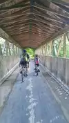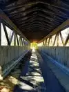 My husband and I drove to South Haven, unloaded our bicycles from our car and biked about 10 miles on this trail from South Haven toward Kalamazoo. The trail is compacted - mostly crushed gravel. It has a canopy of trees over a good portion of the trail so it is good for bicycling on those hot summer days. We biked on this trail on a hot summer day. We biked on this trail on a Tuesday and it was not crowded. This is a covered bridge you bike through that goes over a river. This trail is well maintained, quiet and peaceful. We enjoyed our ride on this trail.