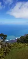 Almost at the end of the road. A short hike through the trees is rewarded by a view out to the ocean. Depending on the weather, at this altitude the view can be both masked or enhanced by the presence of cloud. It makes for an interesting photo opportunity.