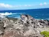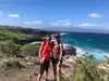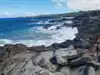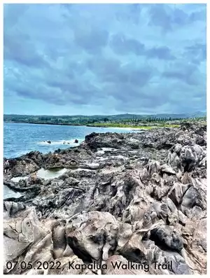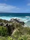 If you get a chance to walk this two mile trail in NW Maui, don't pass it up. The coastline is rugged and beautiful. There is a well worn path away from the trial to get to a rock-jumping ledge - one is about 10 feet and another 17 feet or so. You'll see many locals there if school is not in session. Our kids jumped from the lower platform and enjoyed the water.