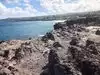Well used trail from Ritz Carlton hotel about 1.75 miles in length, ending at the beach, There is a side spur leading down to the Dragon's Teeth park where wind/sea erosion has shaped volcanic rock to look like a row of teeth sticking up.