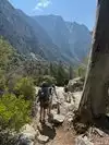 We were definitely rewarded for being early. The air was cool and we only saw a couple of people on the way up the trail. The views are spectacular. I would definitely compare them to Yosemite (but without all the people). Massive granite mountains and cliffs. Beautiful rivers and waterfalls. And we saw several bears along the way. They mostly just checked us out (from as close as 20 feet) and then moved on. The trail was very nice...not too steep, but still going up enough to yield greater and greater views. Mist Falls this late in the year was not generating too much mist, but it was still beautiful. We hiked about a mile beyond the falls because it was so nice on the trail I would definitely recommend hike a ways beyond the falls as the views of the valley became even more spectacular. The trail did get rather hot on the way back down.