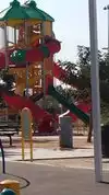 There's a big shaded area with a bunch of kid's climbing things. There were kids running all around climbing and laughing. The base was quite spongy. Nice for old feet. But our grandson had a bit of trouble navigating it.