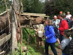 Thoroughly enjoyed hearing the history of this place and learning about all the animals. It was obvious that the animals loved the people who worked here. We were able to pet a fox, feed reindeer, kiss a moose (feed it a carrot from your mouth - if you wanted to do that), and to see a lynx, black fox, red tailed hawk, bear, wolf, porcupine, and other animals. There is a lot of walking and standing if you come here, so don't go if you have trouble doing either one of those. This is a wonderful place. My only complaint is that our group was too large. A smaller group would have been much better.