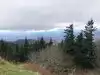 You will be in the clouds when you get here and may or may not get some distance views. It was quite cloudy for us but it was super cool to see how fast they were moving. Got lucky a few times for some breaks in the clouds to get some short lasted distance views. Temp dropped by 15 by time we got up here and all needed our jackets since it was 47. There is latrines up here if you need them. We didn't use so I can't report on cleanliness.