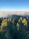 Down at the entrance to the park, it was around 100 degrees and sunny. As we went up the steep and windy road to get to Clingman's Dome, the fog and clouds were definitely visible.