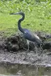 We stayed on US 264 to the south side of the lake, rather than taking the North Lake Road about a mile west of Engelhard. About 2/3 of the way around the south side of the lake, US 264 intersects with NC 94, which is actually a causeway crossing the lake and intersecting on the north shore with North Lake Road. Going north on 94 for about a mile-and-a-half brings you to Headquarters Road. This well-maintained gravel road runs along a levee with the lake to the north and a lagoon to the south. The lake is not really visible from this road due to the heavy forest and other growth, but the lagoon is right at the edge of the road, and though mostly drained, was full of wildlife. We inched along, stopping every time we saw a new critter - it didn't seem like we would ever get to the visitors' center - to take some pictures.