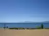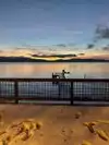 Lake Tahoe is a very beautiful lake. I went there at the end of September - the water was still very nice and warm. On the South side of the lake the water is very flat, on the North side it's deeper. The scenery is beautiful. I went on the beach to see a beautiful sunset. There were just a few people at the beach. In September most of the tourists are already gone but there are still many hotels and motels open. South Lake Tahoe also has McDonald's and other restaurants where you can have something to eat.