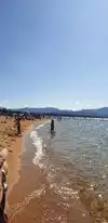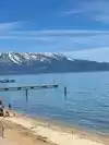 We first went to Lake South Tahoe - very commercial. Difficult to park. Entrance to beach was $8/- per person. Then we went to north end, the California side. Free beach access, and honestly prettier. Found parking spot. Did parasailing. Kayaking, paddle boarding, swimming. A lot of locals as they had brought in their BBQ grills. Beach was clean. From parasailing height, water was also blue and very clear. Fun place.