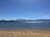 The sand at Lake Tahoe isn't the fluffy white sand at other beaches, but it's nice. The view of the snowy mountains is beautiful and makes up for that. It was somewhat busy, but there is plenty of space for it not to feel crowded.