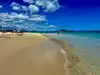 Gorgeous beach, very fine sand, no rocks, less people. Arrived at 9am on a weekday and got a close parking spot (though we’ve read these fill up quickly). No shade on the beach, very happy we brought our umbrella/tent. Wind is strong and feels incredible. Bring your own snacks and drinks as this is situated next to a neighborhood without restaurants in walking distance.