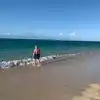 The water is clear with gentle waves. You can sit at the water’s edge looking at the beautiful water, or go in further turn around and see the beautiful beach line and green hills. It didn’t feel crowded, but it wasn’t empty either. For those who enjoy jumping waves, this beach will feel boring. If you like calm beautiful waters, this beach is heavenly.