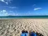 Beach is behind houses and nothing special, but the snorkeling is amazing! Not too many people and so much area to cover, you never bump into anyone. The water is not too rough. Make sure to bring what you need as there is nothing to purchase. Definitely worth the drive! Be careful when sitting in the sand as I was stung by what someone called a “Portuguese man-o-war” posing for this stupid picture ;)