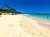 White sand for as far as you can see and clear blue sea with calm waters that’s is shallow if you have small children who just want to play or you can swim out a little further or just float about. Perfect for all including families with younger child.. plenty of palm trees along the beach if you need some shade and showers and toilet facilities along the way.