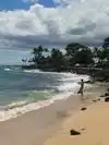 Outside the Beach House restaurant and across the road from the Lawaii Beach Resort, this is a good family area. Snorkeling may be among the best with crystal clear waters, numerous species of fish and beautiful coral. We swam with Green Sea Turtles who come in despite the numerous people there. You are almost guaranteed to find a Monk Seal visiting the beach, which means that it gets roped off as an endangered species, but clearly the seal(s?) knows it can spend a few hours sunning itself without being bothered.